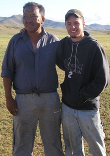 Name: Ryan Dunnavant (on the right) Residence: Austin, TX Roles: Captain (the lesser of two evils), Negotiator, DJ Education: Rice U...Houston, TX...Chemical Engineering...the only place this might come in handy is in Kazakhstan's former Soviet nuclear and biological weapon testing fields Experience: 1700 km trip through northern Mongolia in the summer of 2005 (slept and/or drank most of the way, never drove); skilled in the arts of tent construction and pretending not to understand foreign authorities Story: Ryan is a redneck-hippie and unbalanced optimist. He's got a couple reasons to run the world's gauntlet to Mongolia...first, the promise of a racing horse if he can ever return and beat Puujee (on the left) in a wrestling match...and second, hell, defining moments aren't supposed to be subtle for a stud like him. |
